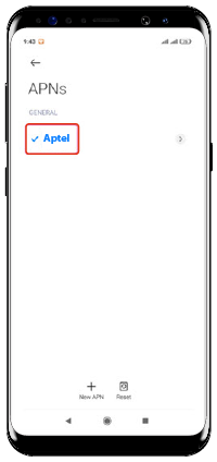 از لیست APN های قابل مشاهده ApTel را انتخاب و فعال کنید.