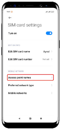 گزینه نامهای نقطه دستیابی (Access Point Names) را انتخاب کنید.
