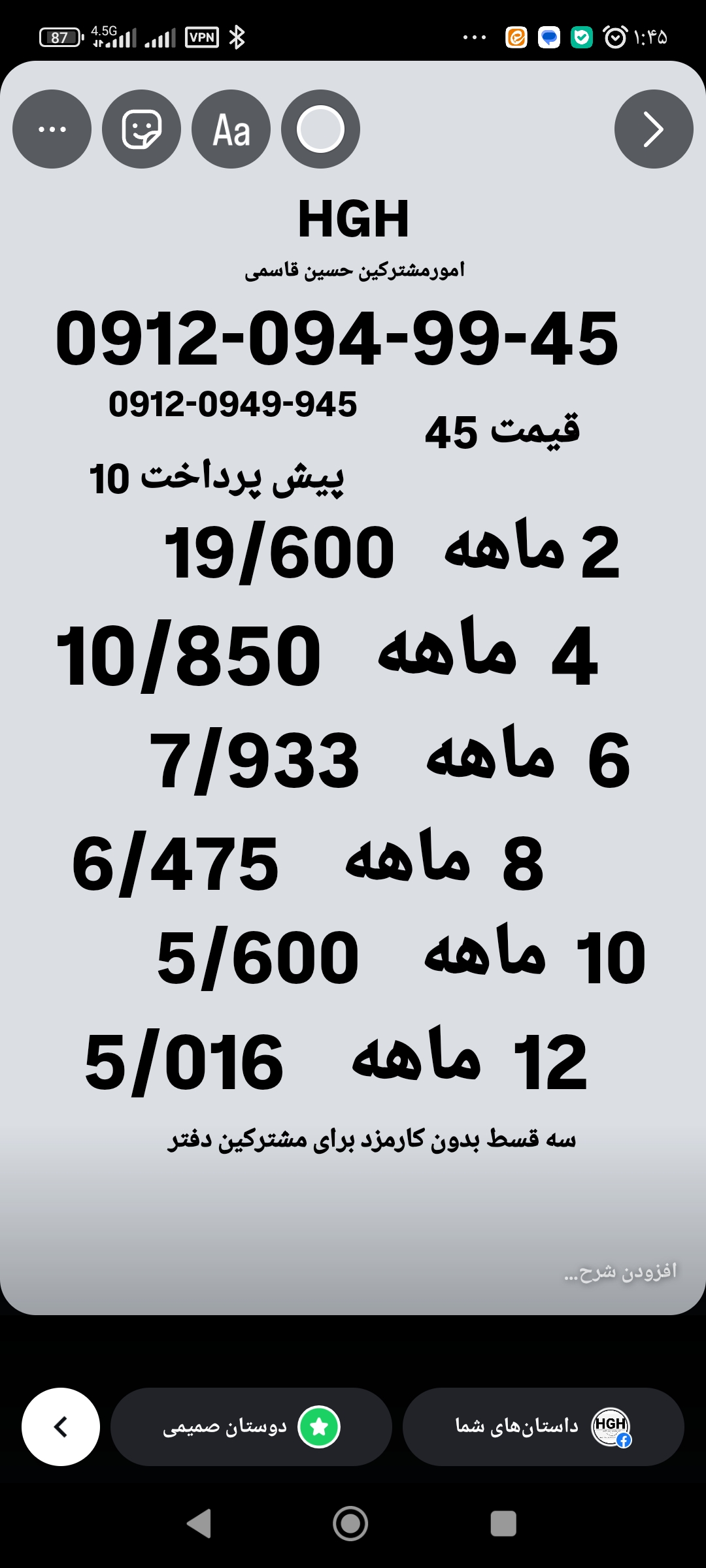 آیا به دنبال یک شماره تلفن همراه ویژه و ماندگار هستید؟ **شماره 0912** بهترین انتخاب شماست! با طرحهای نقد و اقساط متنوع، به راحتی مالک این شماره خاص شوید و اعتبار خود را افزایش دهید. زمان را از دست ندهید، همین حالا اقدام کنید و با این شماره منحصر به فرد، قدمی به دنیای حرفهای بردارید!