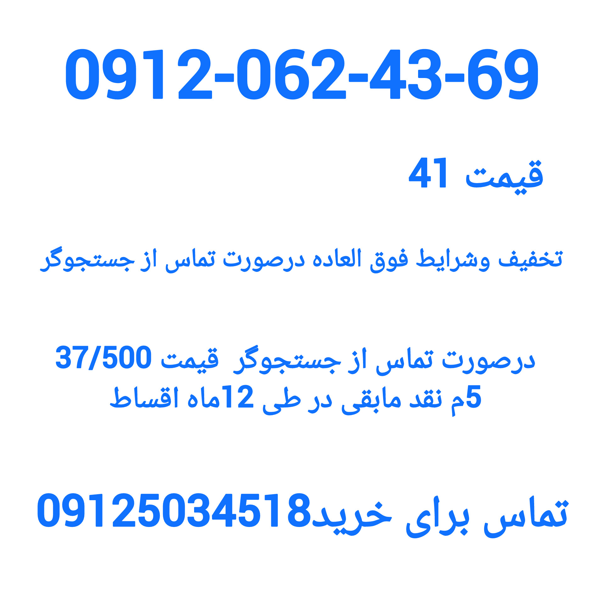 با خریدنقدواقساط شماره 0912 شما به جمع نخبگان و حرفهایها بپیوندید! این شمارهها نمادی از اعتبار و اعتماد در دنیای کسب و کار هستند. فرصت را از دست ندهید و با این شماره منحصر به فرد، اعتبار برند خود را بالا ببرید و به راحتی در خاطر مشتریان باقی بمانید. تماس بگیرید و اولین قدم را برای موفقیت بردارید!